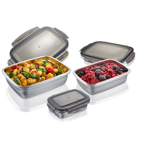 ست 3 عددی ظرف دربدار استیل مستطیل