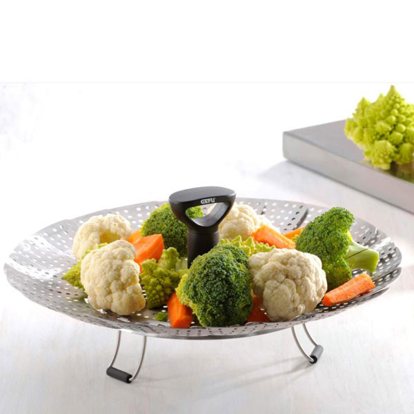 دارای پایههای سیلیکونی تاشو جهت جلوگیری از برخورد با ته قابلمه